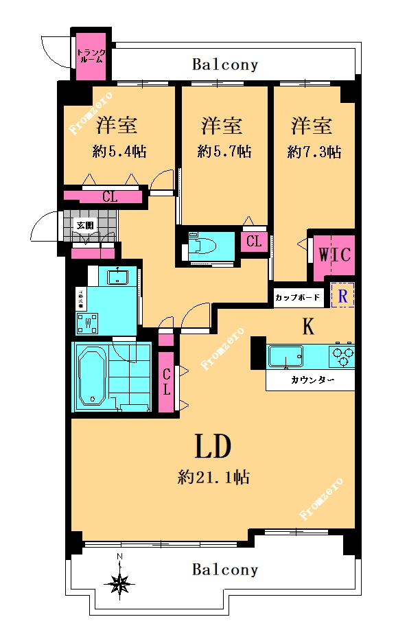 間取り 3LDK(洋 7.3・5.8・5.5 LDK 21.7 )